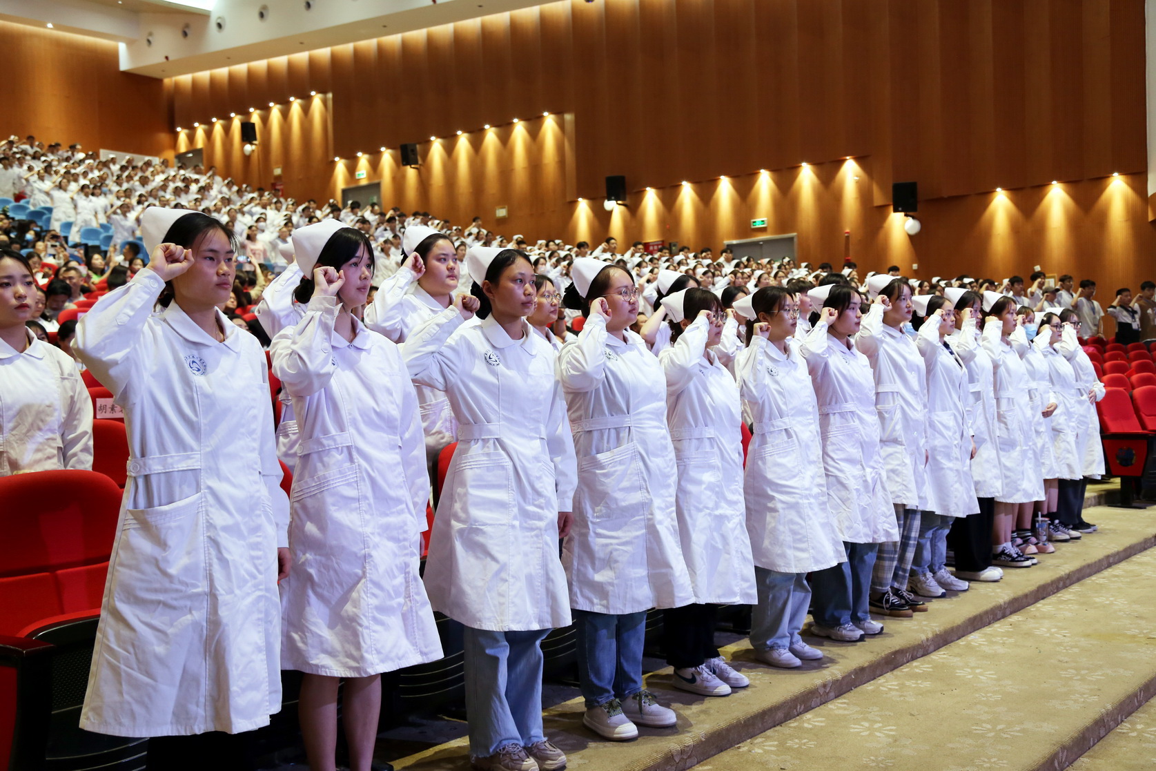 洁白的燕帽,象征着圣洁的天使;燃烧的蜡烛,象征着护理“燃烧自己,照亮他人”的专业精神。本次纪念活动在神圣的“传光授帽”仪式中、在庄严的“南丁格尔誓言”宣誓中、在全场合唱《护士之歌》激昂的歌声中落下了圆满的帷幕。