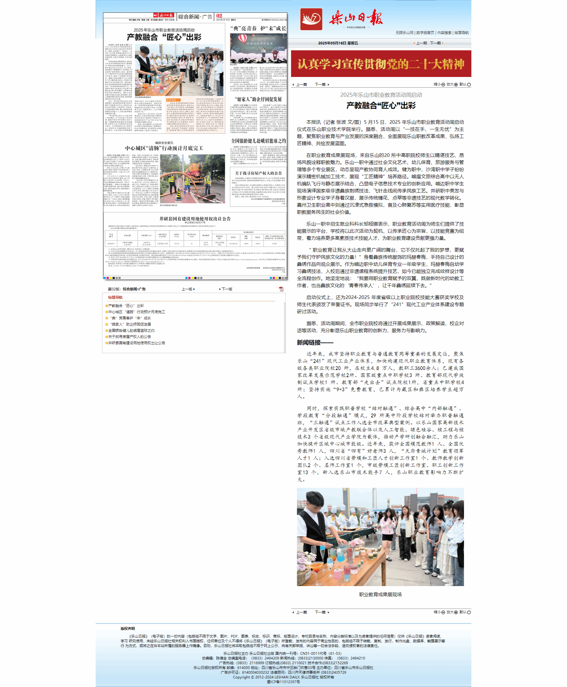 乐山日报:2025年乐山市职业教育活动周启动 产教融合“匠心”出彩