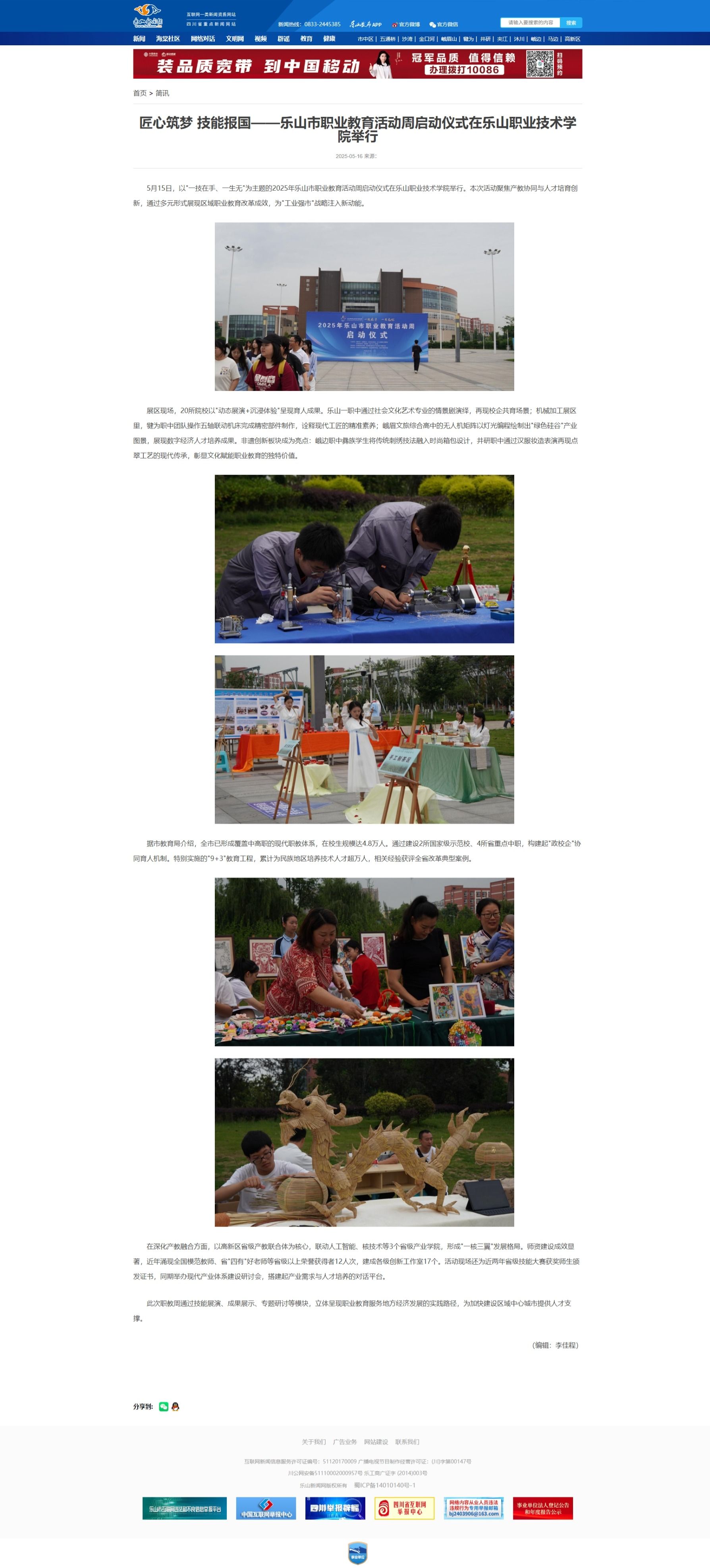 乐山电视台新闻联播:2025年乐山市职业教育活动周启动(视频)
