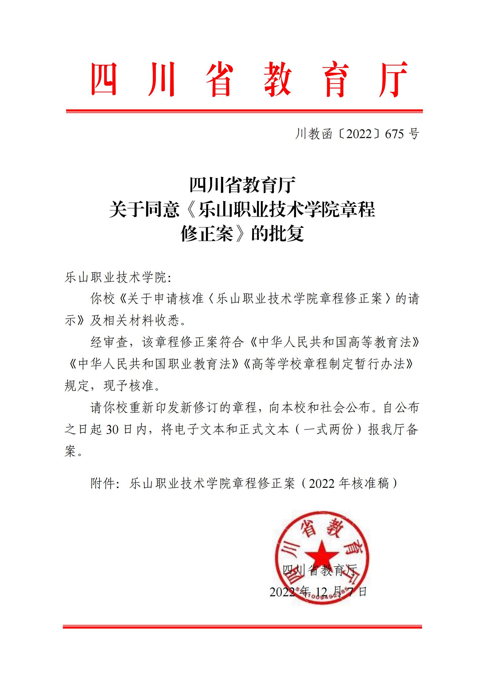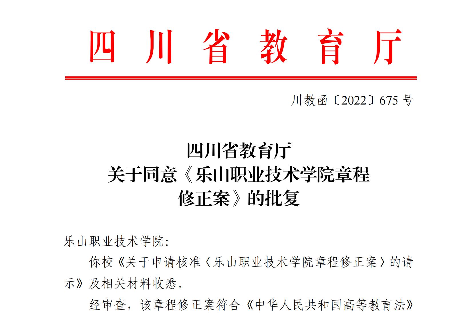 按照《四川省教育厅关于普通高等学校章程修订工作的通知》(川教函〔2022〕176号)文件精神,学校于2022年完成了《beat365英国官方网站章程》修订工作,并于2022年12月7日通过四川省教育厅核准。现予公布。