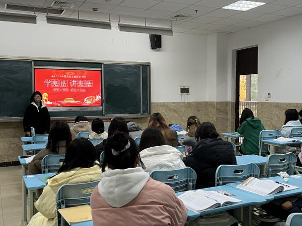 活动伊始,全体同学共同观看了精彩的普法直播节目,深入学习了宪法及相关法律知识。随后,在各班学习委员的带领下,同学们满怀激情,齐声诵读宪法相关条款,教室里回荡着坚定而有力的声音,营造出浓厚的学习宪法、尊崇宪法的氛围。通过这一形式,同学们对宪法知识的理解得以深化,宪法精神在心中生根发芽。