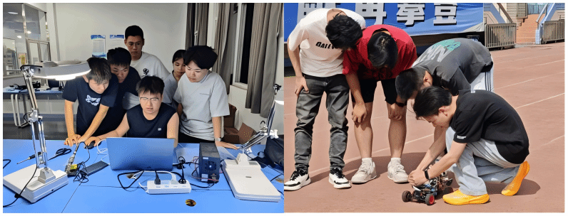 回顾备赛历程,团队的成长之路清晰而坚定。2024年9月,学校组建了一支涵盖测控技术、控制科学、电子信息等多个专业领域的年轻指导教师团队,6名硕士研究生教师各展所长,为竞赛提供全方位技术支撑。在学院大力支持下,四号工厂2楼智能汽车工作室正式启用,配备3D打印机、示波器、专用赛道、车模等全套设施设备,并经过4次以上空间与设备优化调整,成为师生备赛的“硬核大本营”。