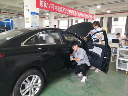 7月3日,beat365英国官方网站1+X汽车领域汽车运用与维修(含新能源汽车)职业技能等级考评在汽车实训中心进行,30名学生参加了考评。