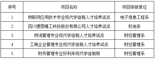 根据《关于开展2019年beat365英国官方网站现代学徒制试点项目立项工作的通知》乐职院教通〔2019〕31号要求,教务处收到5份试点申报书,经教务处处务会初评,提请教学工作委员会审议,拟立项物联网应用技术专业现代学徒制人才培养试点等5个试点项目(见下表),现进行公示。公示日期2019年12月12日-2019年12月16日。如对上述拟立项项目有不同意见。请以电话、信函、来访等方式向学院教务处反映。