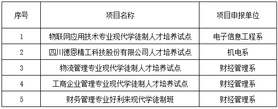 根据《关于开展2019年beat365英国官方网站现代学徒制试点项目立项工作的通知》乐职院教通〔2019〕31号要求,通过教务处处务会初评,提请教学工作委员会审议,经公示,确定2019年beat365英国官方网站现代学徒制试点项目如下,请试点项目相关系部填写试点任务书,明确试点任务和相关责任人,在12月31日前一式两份报行政楼322室。