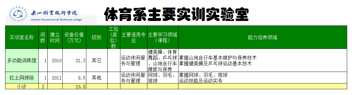 体育系实训室总体情况