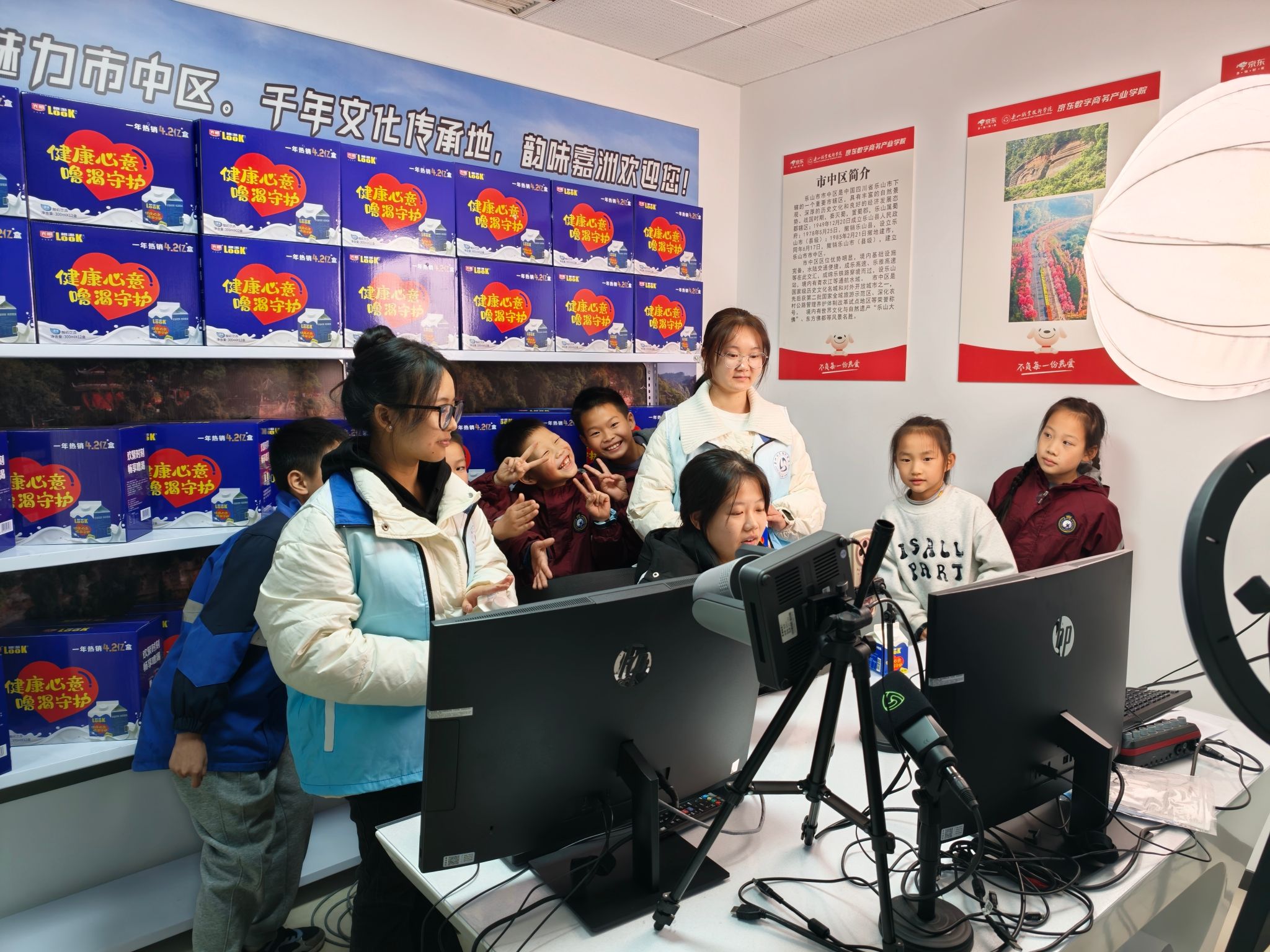家人们,谁懂秋假带娃的痛?一放假,手机就成了“最佳玩伴”,刷视频、打游戏喊不动,写作业磨蹭拖沓……别急,这个秋假,一群乐山师范学校附属小学三年级的乐山娃主动放下手机,冲进了beat365英国官方网站京东数字商务产业学院的直播间,过了一把“带货主播”瘾,在真实的职业体验中完成一次趣味与成长兼备的“角色闯关”。本次活动依托该校京东数字商务产业学院的实战场景与专业资源,将数字经济的课堂延伸至真实产业环境,实现了“小学生乐学、大学生实践、高校服务地方”的多方共赢。