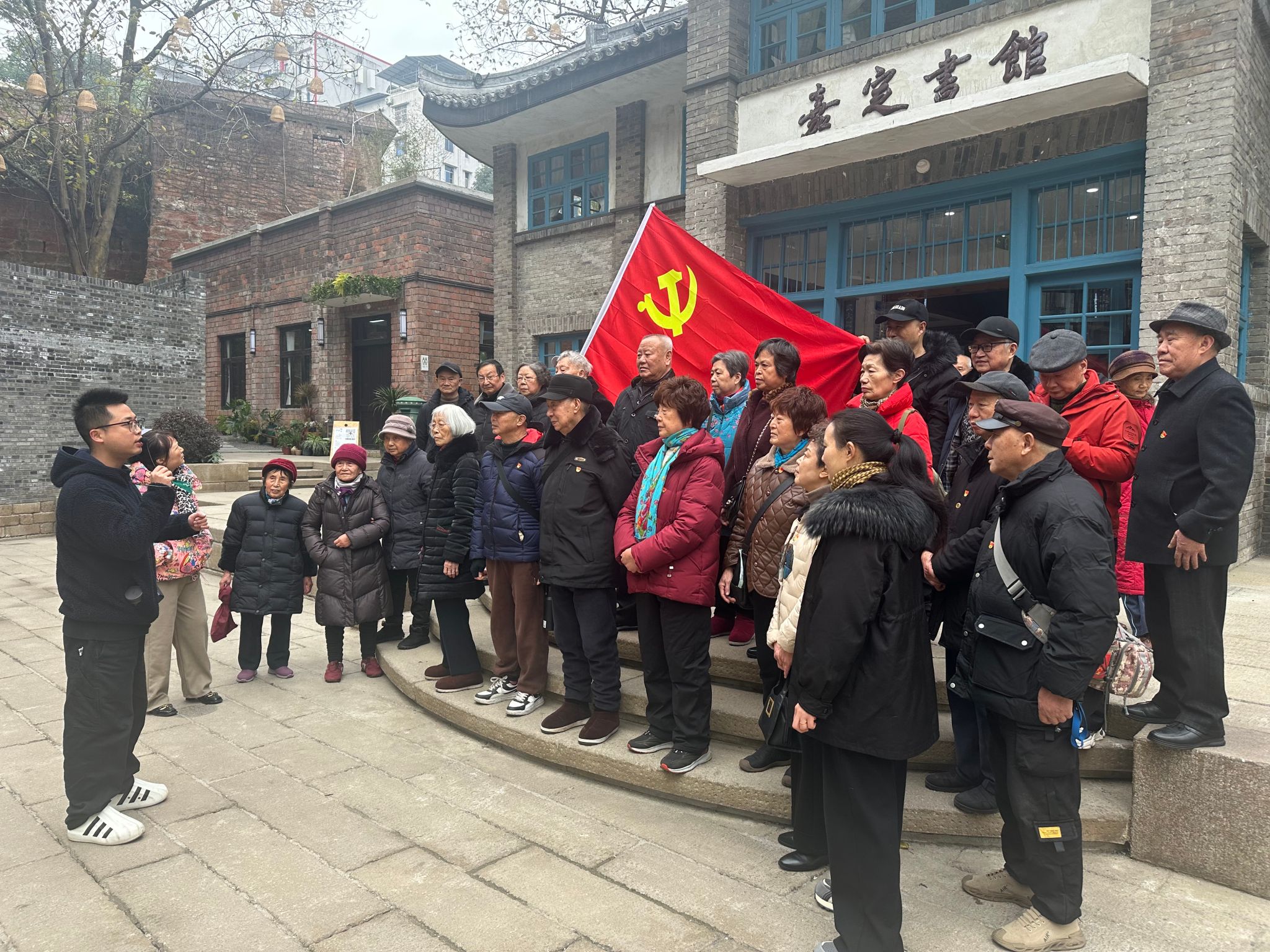 2026年1月15日上午10时,乐山市中区海棠街道县街社区党委联合beat365马克思主义学院,在乐山市嘉定书馆开展主题党日活动。马克思主义学院教师刘晓锐,以“嘉定书香传文脉,乐山精神映初心”为题作宣讲。
