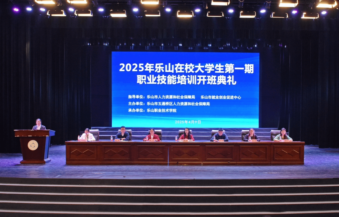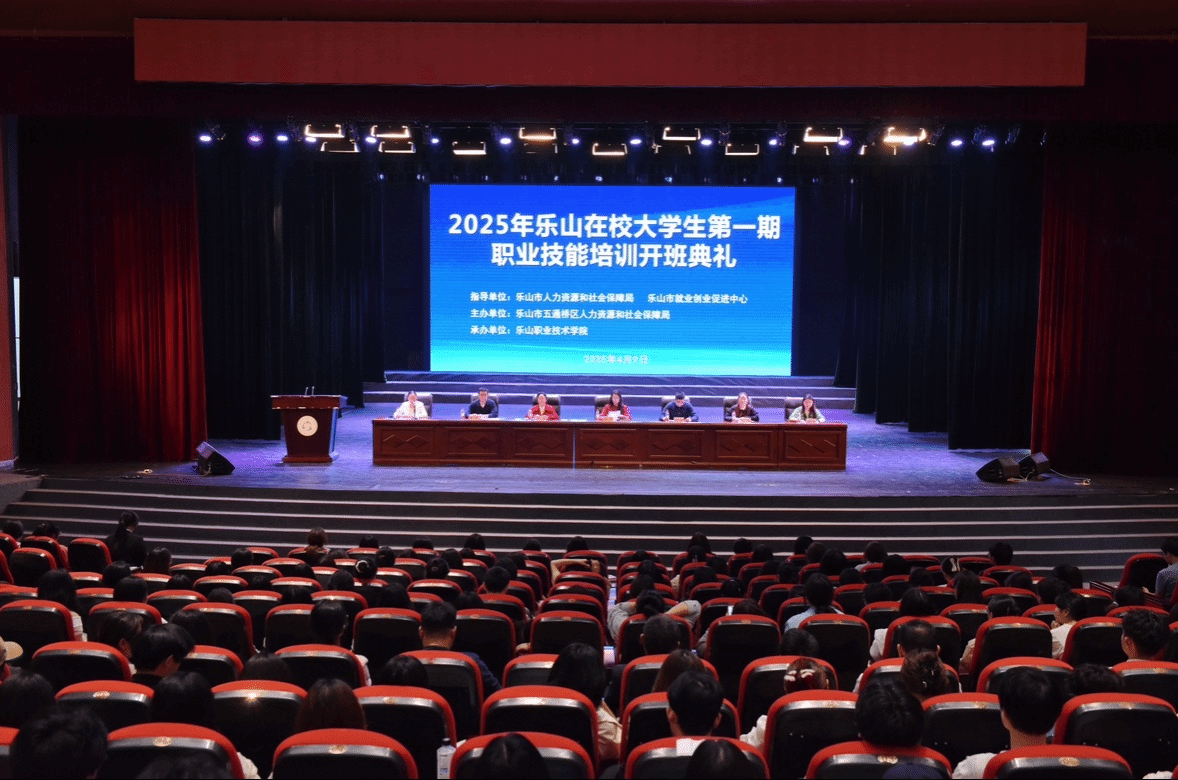 为深入贯彻落实国务院、省政府、市政府决策部署,扎实推进乐山市职业技能提升行动,4月9日下午,2025年乐山在校大学生第一期职业技能培训班开班典礼在beat365英国官方网站礼堂隆重举行。此次培训班由五通桥区人力资源和社会保障局与beat365英国官方网站共同举办,旨在提升乐山在校大学生的职业技能,促进大学生就业。