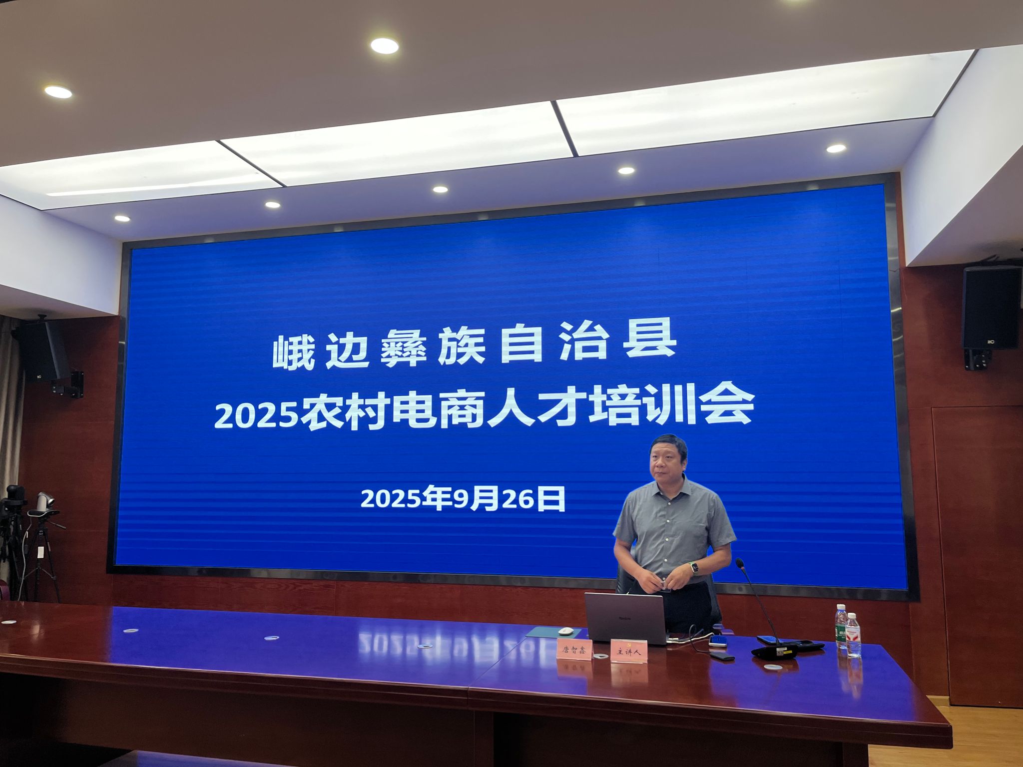 9 月 26 日,beat365英国官方网站数字经济与管理学院唐智鑫新媒体电商创新工作室,赴峨边彝族自治县开展 2025 年农村电商人才专项培训,为当地 60 余名乡镇、村干部授课。培训结合乡村电商实际需求,将 AI 工具实操、短视频创作、直播带货等转化为实用课程,还针对峨边农特产 “生态、地域特色” 定制 AI 方案,指导学员拍 “田间直采” 短视频、设计 “农产故事化” 直播脚本,助力峨边竹笋等农特产品外销,为乡村振兴注入数字活力。