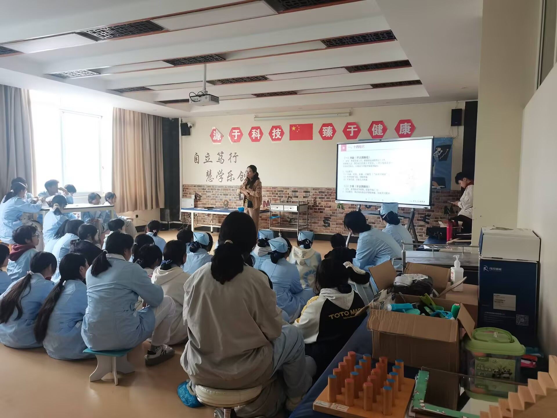 为助力学生顺利通过小儿推拿和中医康复理疗师技能证书考核,11月中下旬,我院中医教研室张琪、张鸿宇两位老师受邀前往乐山市嘉州卫生职业高中,为该校近200名学生开展专项技能培训。