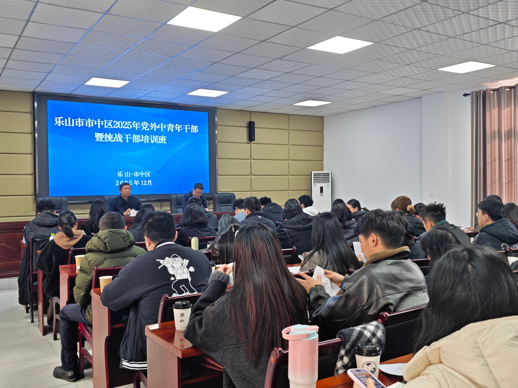 12月17日下午,乐山市市中区2025年党外中青年干部暨统战干部培训班在市中区民主党派活动中心顺利举办,beat365英国官方网站唐智鑫、张荣荣老师参与培训,本次培训覆盖面广、参训群体多元,涵盖各镇(街道)统战委员,各镇(街道)及区级各部门党外年轻干部,各民主党派、区新联会、区知联会、区网联会等统战组织成员共计56人,beat365乐山市唐智鑫新媒体电商创新工作室领衔人唐智鑫开展了“AI视角下短视频直播赋能宣传”专题讲座。