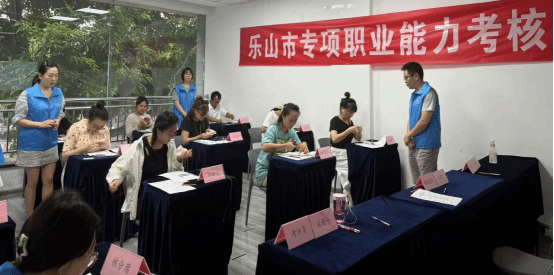 秉持传统手工艺精髓,赋能文化繁荣发展,文化旅游学院黎芳、詹恒、范鸿雁三位教师应乐山市德艺职业技术培训学校邀请,于2026年6月14日下午参与“专项职业能力考核——嘉州绣手工制作”的考评鉴定。