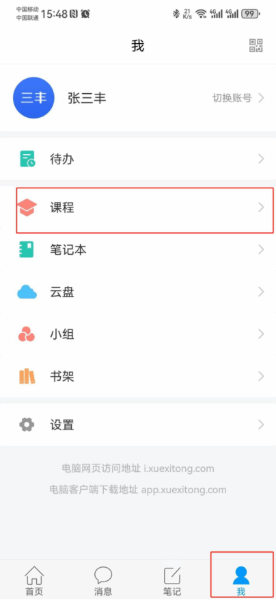 5. 登录成功后,点击 我-课程