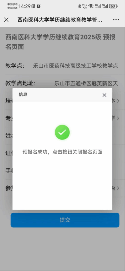点击提交后报名成功