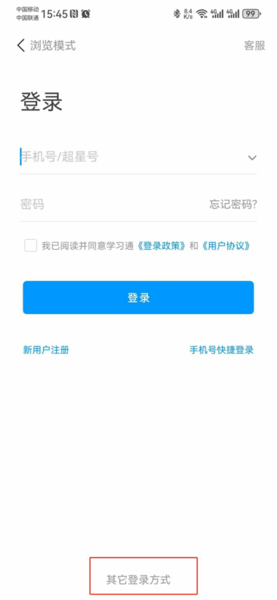2. 打开app 登录选择 其他登录方式