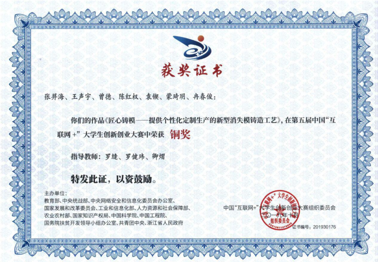 鉴于学院教学成果奖申报文件于2021730日截止,省级教学成果奖奖励通知文件于202186日才收到,为确保获得国家级“互联网+”大学生创新创业奖项指导老师能参加省级教学成果奖的评审,经科技处和教务处共同决定,拟按照文件规定增补2019年国家互联网+大学生创新创业总决赛铜奖获奖项目《匠心铸模——提供个性化定制生产的新型消失模铸造工艺》指导老师提交的《基于生产工艺革新的双创实践型人才培育的改革与实践》参加院级和四川省教学成果奖评审,项目组成员为:罗健玮、卿熠、黄敏、黄泓轲、强永军、罗万波、万幸、罗缝、陈英、周虎