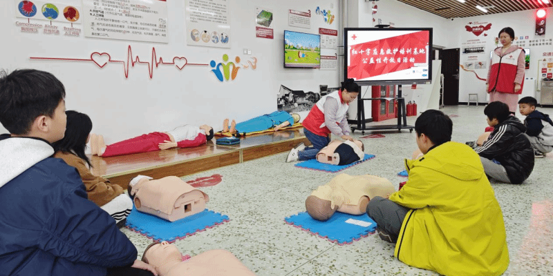本次活动主要了解了红十字会运动的起源,体验了交通安全,家庭安全,防火灭火,应急救护等技能。其中,应急救护培训环节作为活动的重头戏,受到了学生们的高度关注。在专业师资的指导下,学生们学习了心肺复苏(CPR)+AED等关键应急救护技能,并进行了实际操作练习。通过反复练习和指导,学生们逐渐掌握了这些技能的要领。