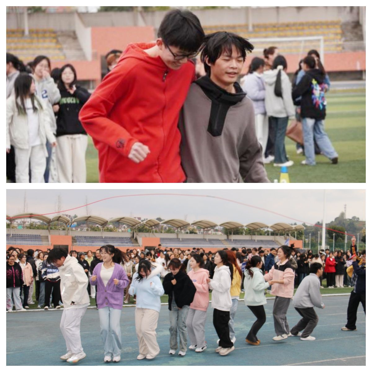 活动于下午3点正式开始,首先进行的是跳长绳与两人三足接力赛。这两项团体赛不仅考验了同学们的体能与协作能力,更在比赛中激发了大家的集体荣誉感。跳长绳比赛中,各班参赛同学默契配合,跳出了青春的风采;两人三足接力赛中,同学们肩并肩、脚绑脚,共同冲刺,展现了团结的力量。赛场上,加油声、欢笑声此起彼伏,充满了青春的活力与激情。