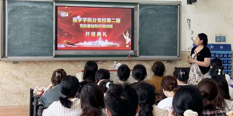 2025年4月15日下午1点,医学学院分党校第二期党的基础知识培训班开班典礼在教学楼2C103举行。党总支副书记(主持总支工作)李晓婷、党总支副书记伍静、学生党支部书记张晗钰、教工党支部书记邓颖和专职组织员涂亚莉及培训班80余名学员出席。