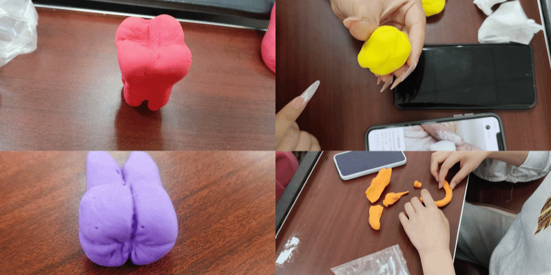 活动于当日13时在2号教学楼C204教室准时启动。现场设置教学展示区、手工创作区、知识竞答区三大功能区域。在专业教师指导下,参与者通过牙模观察、结构解析等环节系统学习牙齿解剖知识,随后使用医用级彩陶土进行个性化牙体塑形。
