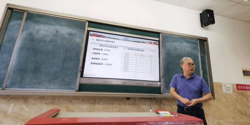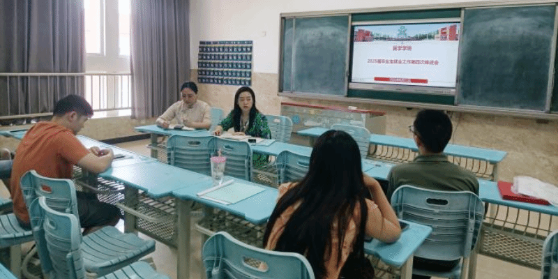 2025年6月14日,医学学院在教学楼2A404教室召开2025届毕业生就业工作第四次推进会,学院党总支副书记李晓婷(主持党总支工作),党总支副书记伍静、2025届毕业班级辅导员参加会议。