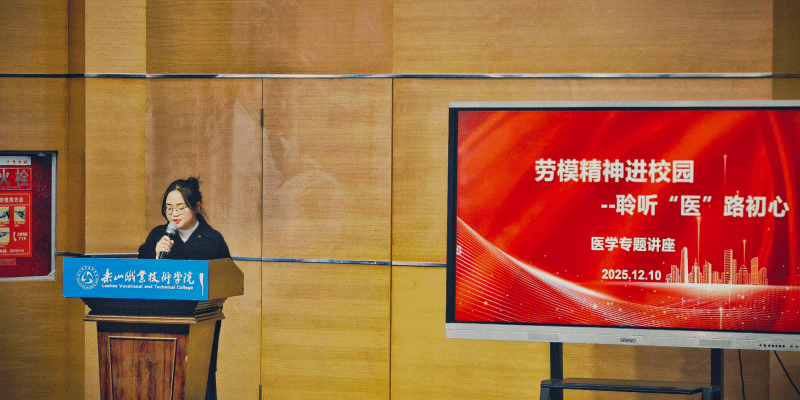 2025年12月10日下午,医学学院“劳模精神进校园——聆听‘医’路初心”讲座在图书馆学术报告厅举行,全院师生共同参与。