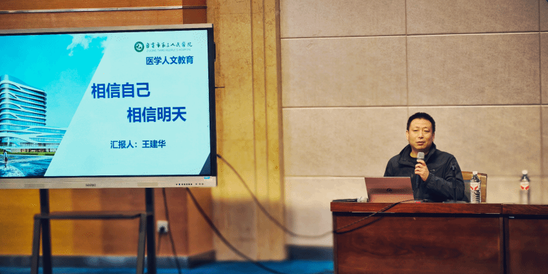 为引导学生树立正确价值观、弘扬敬业奉献精神,学院特邀基层医疗战线代表--自贡市第三人民医院呼吸与危重症医学科主任王建华博士来校分享。王医生以亲身经历,为同学们上了一堂感人至深的人生课。他曾因意外事故导致脚部截肢,却凭借顽强毅力克服身体残疾完成了从本科到博士的学习之路;毕业后,兢兢业业奋战在临床一线,以精湛医术和高尚医德赢得广泛好评。