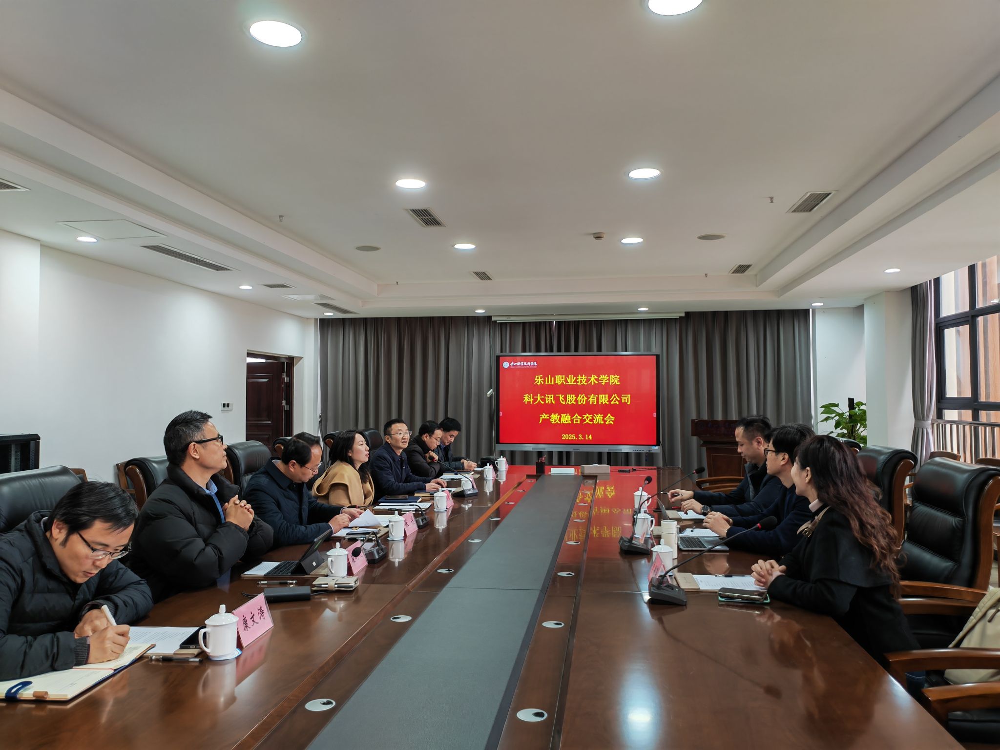本次论证会人工智能学院邀请了来自乐山希尔电子股份有限公司、四川百威智联科技有限公司、四川通信服务产业有限公司乐山分公司、科大讯飞股份有限公司、北京华晟经世信息技术股份有限公司的企业专家和专业教师一起认真论证。