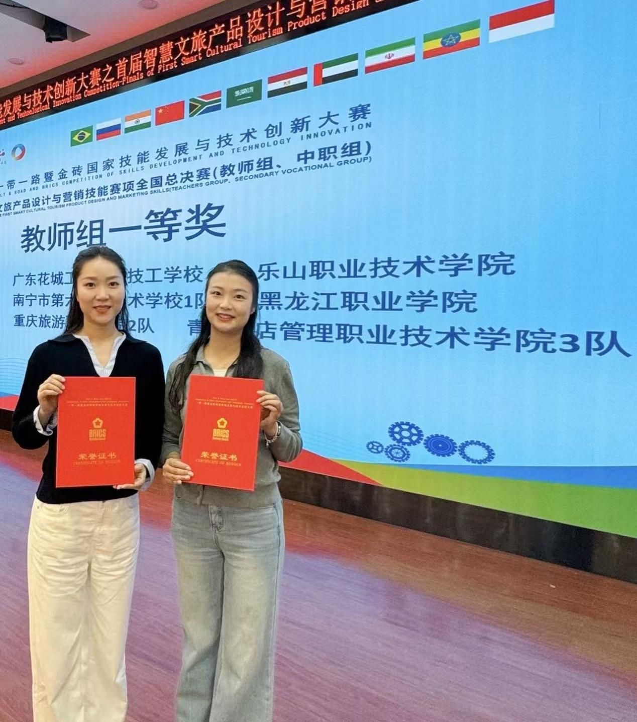 近日,2025年“一带一路暨金砖国家技能发展与技术创新大赛之首届智慧文旅产品设计与营销技能大赛”全国总决赛在南宁市第六职业技术学院落下帷幕,beat365英国官方网站文化旅游学院选派的教师代表队(参赛教师刘梦媛、鲜梦玲、周啸、詹恒)从全国百余支参赛队伍中脱颖而出,荣获全国教师组一等奖,学校荣获“最佳组织奖”。