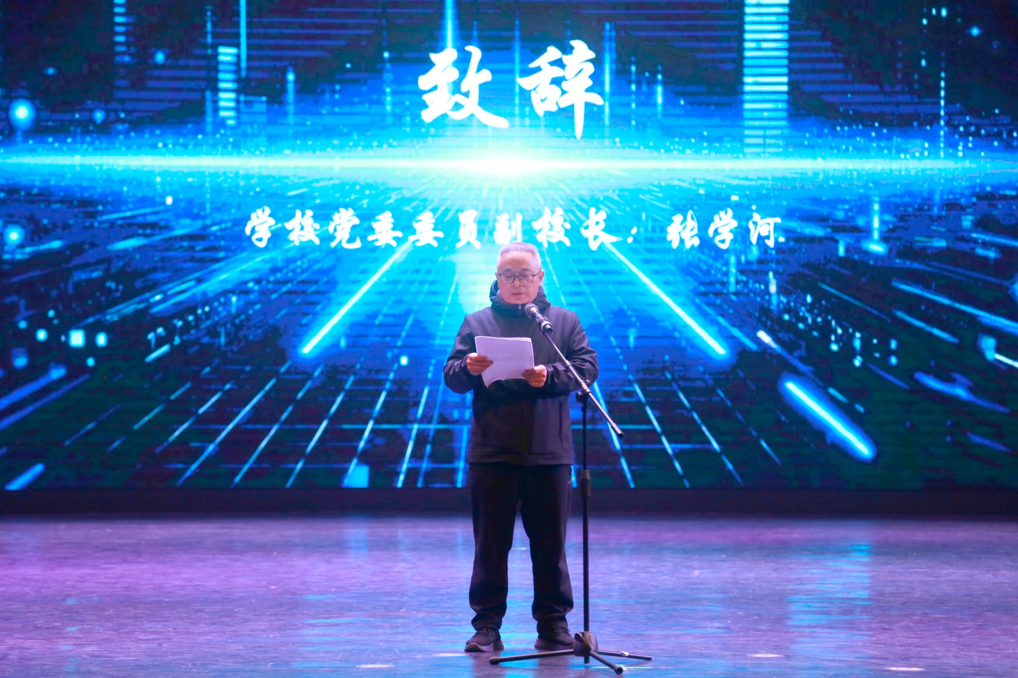 决赛开始,学校党委委员、副校长张学河为大赛致辞。他紧扣校训“创新”精神,阐述了创新对于时代发展与个人成长的核心价值。鼓励同学们立足专业、大胆实践、协同合作,将创意转化为解决实际问题的项目。肯定了大赛作为创新实践平台的意义,并向校团委提出要求,持续支持学生创新创业。