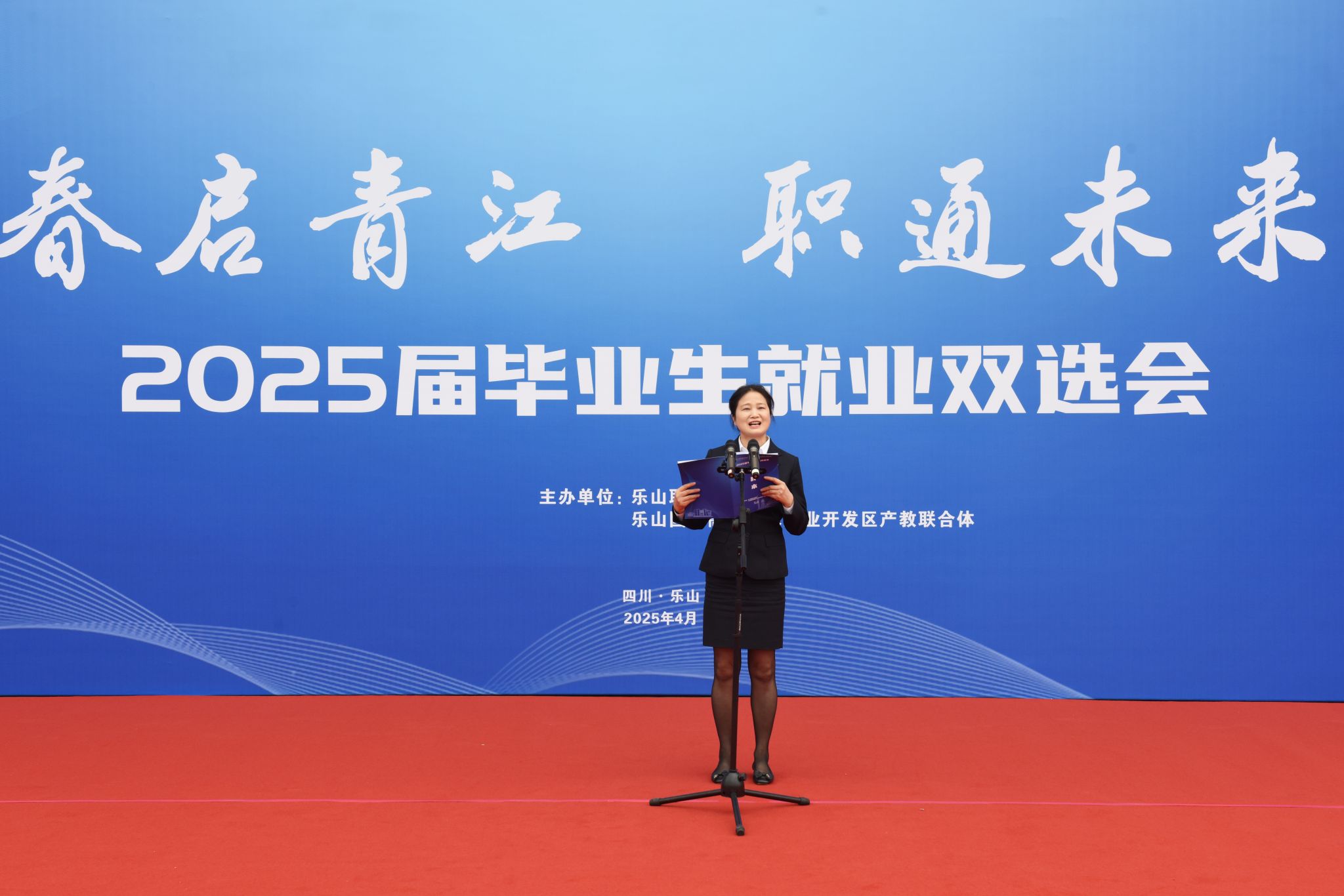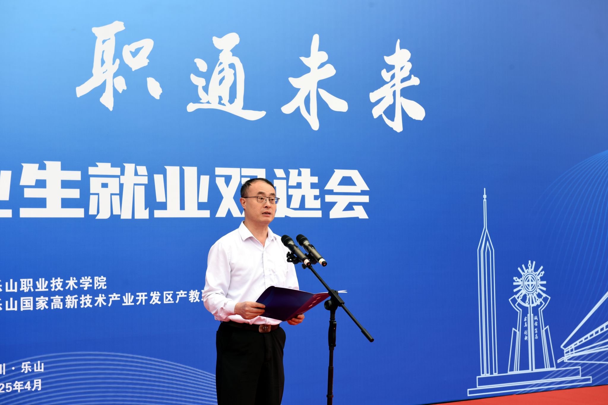校长刘忠在启动仪式上致辞,对前来参加双选会的各行业、企业代表表示诚挚欢迎。他表示,为办好此次双选会,学校紧扣乐山产业发展,多次前往乐山市各区县开展全覆盖对接调研,深度对接县域经济发展需求,精准拓岗。希望同学们能利用好此次学校为大家精心搭建的双选桥梁,以饱满的热情、扎实的功底和自信的态度开启精彩职业生涯。