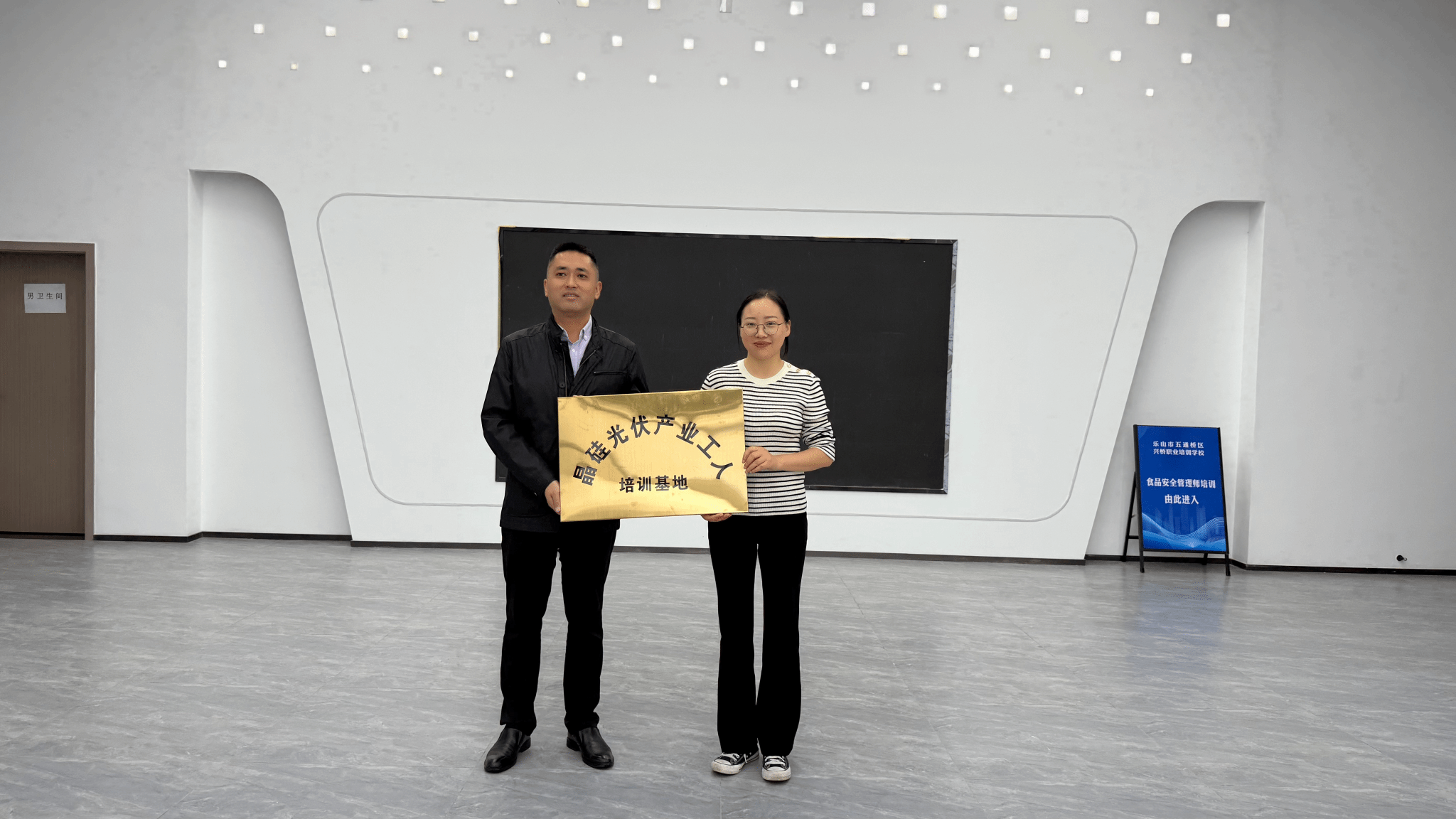 为深化产教融合,服务地方产业发展,9月23日,beat365英国官方网站继续教育学院(继续教育处)副院长(主持工作)彭媛媛一行,赴五通桥区公共实训中心开展实地调研,并成功举行产教融合培训项目合作研讨会。五通桥区人力资源社会保障局党组书记汪宜宾、副局长吴远祥及五通桥区公共实训中心负责人出席。双方在会上达成重要共识,共同为“晶硅光伏产业工人培训基地”揭牌,标志着校地合作在培养高素质技能人才方面迈出坚实一步。
