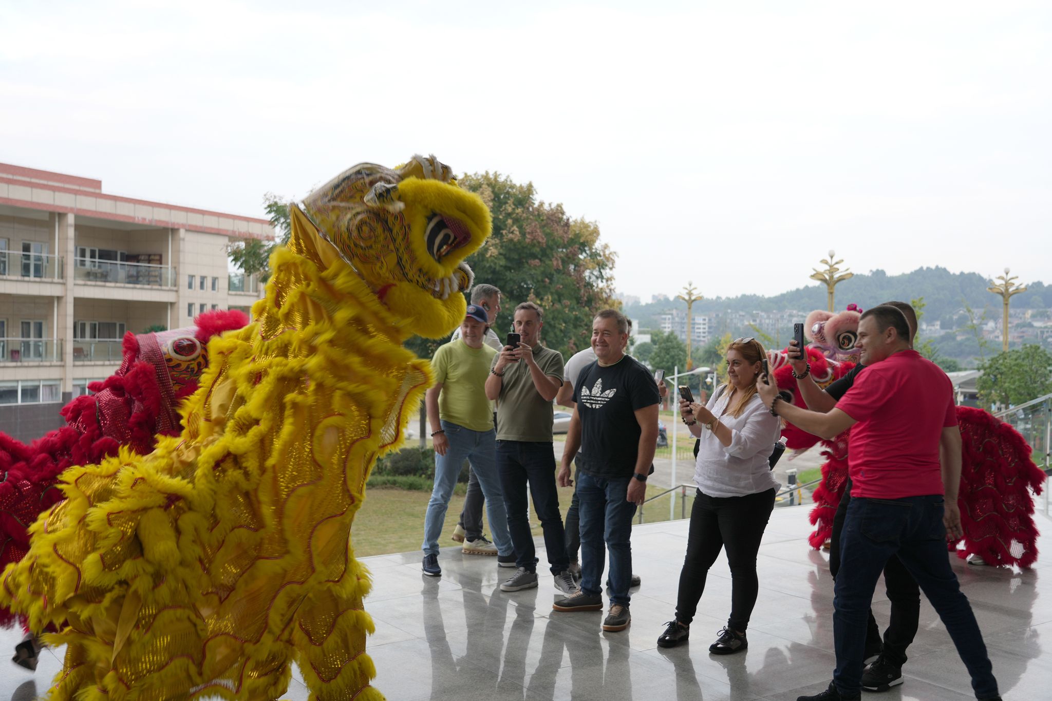 代表团一行首先来到青江武术基地,观摩了武术套路、散打对抗及舞狮表演。外宾们对刚柔并济的中华传统武术和热闹喜庆的舞狮文化表现出浓厚兴趣,不时驻足欣赏、拍照记录,对师生们精湛的技艺表示赞叹。