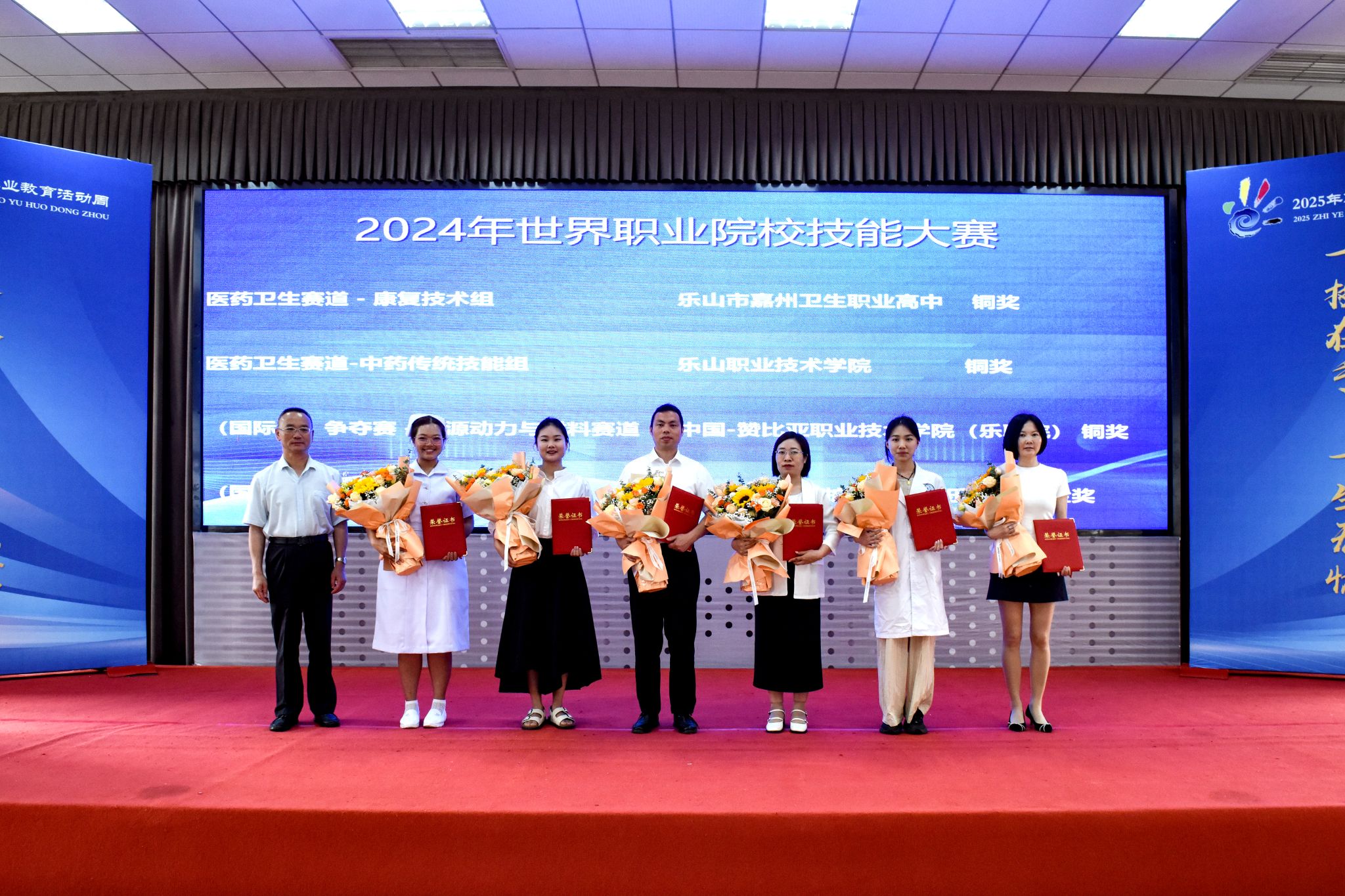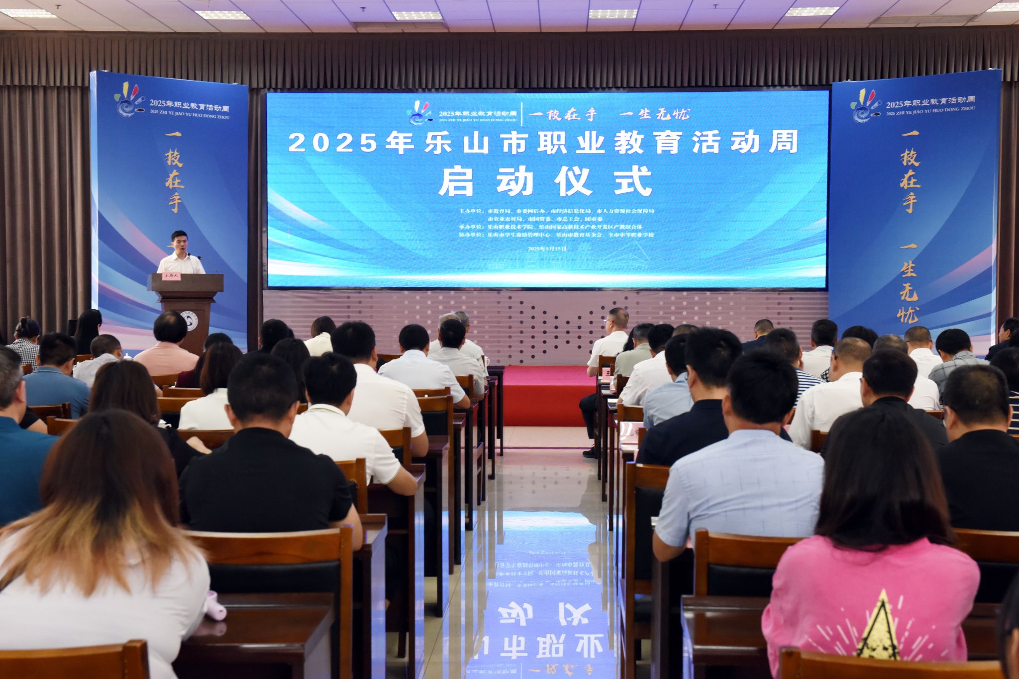 2025年5月15日,以“一技在手、一生无忧”为主题的2025乐山市职业教育活动周启动仪式在beat365英国官方网站举行,乐山市人大常委会副主任周伦斌出席活动并宣布职业教育活动周启动。乐山市有关部门负责同志,3个省级现代产业学院负责同志,各县(市、区)政府、教育行政部门分管负责同志,全市中职(技工)学校校长、普职融通班结对的普通高中学校校长、部分初中学校校长代表、企业代表等200余人参加活动。乐山市教育局总督学陈凯主持开幕式。