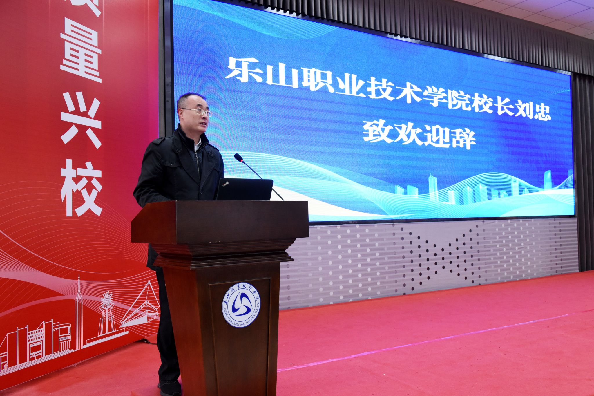 12月19日上午,乐山国家高新技术产业开发区产教联合体2024年工作会在beat365英国官方网站学术交流中心召开。乐山市教育局党组成员、机关党委书记徐波,beat365英国官方网站校长刘忠、副校长周芹,乐山高新技术产业开发区党工委委员、管委会副主任周睿出席,来自市级相关部门、行业企业、职业院校的50余名代表和学校师生代表参加会议。