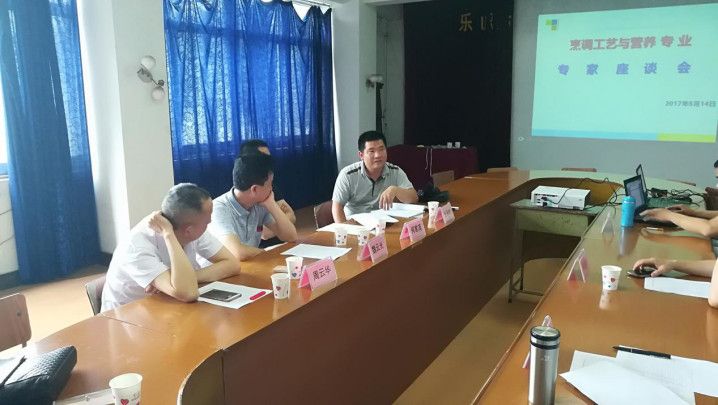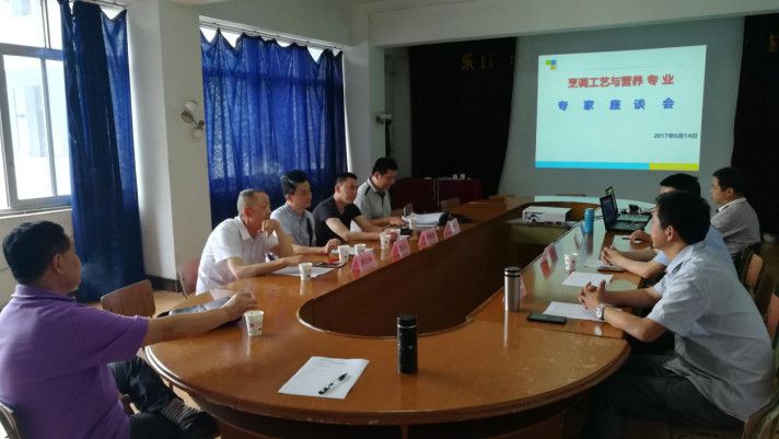 2017年6月14日下午,旅游系在综合楼三楼会议室召开了烹调工艺与营养新专业申报专家论证会,本次会议邀请了四川旅游学院副教授张海豹、乐山市餐饮协会副会长魏云光、周永华,乐山市餐饮协会名厨委员会会长何君茂,四位来自行业的专家与旅游系领导及旅游系烹调工艺与营养专业教师对烹调工艺与营养专业人才培养方案进行了研讨。