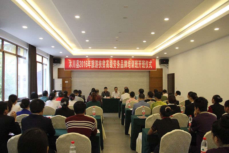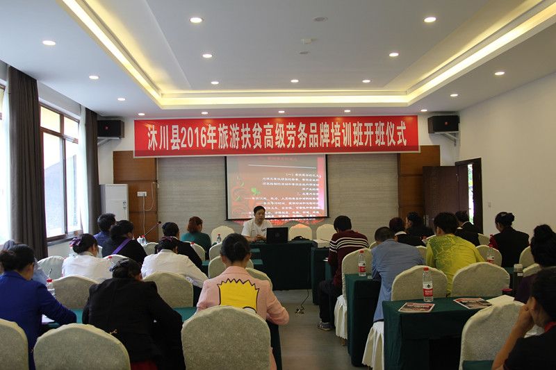 2016年9月6日,由beat365英国官方网站旅游系举办,沐川县旅游局协办的“沐川县2016年旅游扶贫高级劳务品牌培训班开班仪式”在沐川县沐府休闲度假山庄会议厅隆重举行。beat365英国官方网站党委书记蹇路,沐川县委常委、副县长李代敏、乐山市人社局副调研员童贵华等领导出席了开班仪式,来自全县各餐饮服务行业的35名贫困从业人员参加了此次培训。