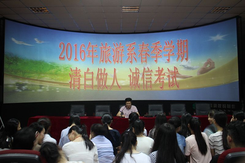 为了迎接即将到来的2016年春季学期期末考试,加强校规校级建设,促进学生德智体美全面发展。旅游艺术系于7月3日晚7点在3D实训室召开了诚信考试大会,大会由系副主任黄剑波主持,参加的人员有系全体学生以及各班辅导员。