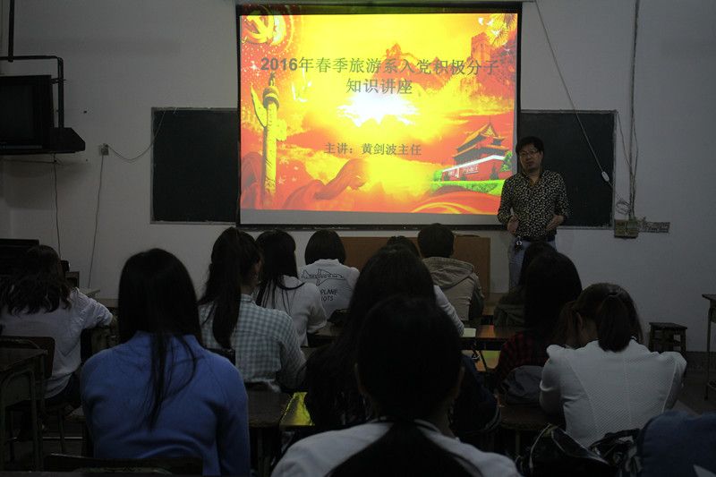 为提高同学们对党知识的初步了解,端正同学们的入党动机。我系于5月22日晚七点半在综合楼二楼多媒体教室开展了入党积极分子知识讲座。由系副主任黄剑波主讲。