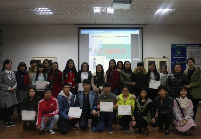 为丰富大学生的校园生活,倡导反腐反贪的政治理念,提高大学生清廉、正直的品德,增强大学生的政治素质,beat365英国官方网站旅游系于2015年12月2日在旅游社实训室举办了大学生廉正教育ppt演讲比赛。到场的评委分别有团委老师鲜梦玲老师,团委副书记伍黄琴,还有宣传部部长刘欢、副部长蒋雷,来自大一各班的22名同学参加演讲比赛 。