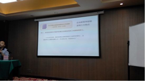 培训会上,中国职业教育学会科研工作委员会常务理事、同济大学职教研究所副所长徐溯教授和中山技师学院职教研究所的雷三元教授分别就现代学徒制项目的申报与建设实务暨校企一体化人才培养新模式,从教育部和人社部两个方面进行了分析和讲解,围绕什么是现代学徒制、现代学徒制怎么做、试点中存在的问题,院校的学徒制申报等方面进行了探讨和交流。此次交流会对我系酒店管理专业的“现代学徒制”的申报和建设起到的很大的指导作用,为专业的发展指明了方向。