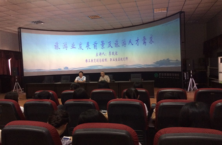 李经理主要为旅游管理及导游专业的同学介绍了旅游业发展的前景,指出中国旅游业发展近三十年来,正面临一个整体转型问题,市场上的各类旅游企业在一定意义上也面临一个转型问题,这是旅游业下一步发展的主流。所以行业对旅游人才的需求也随着行业的发展有着进一步的要求与条件。最后李经理详细地为同学们解答了一些在实际生活中的遇到的问题,为同学们平时的学习生活安排作建议与指导。