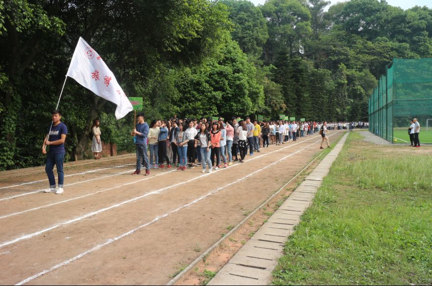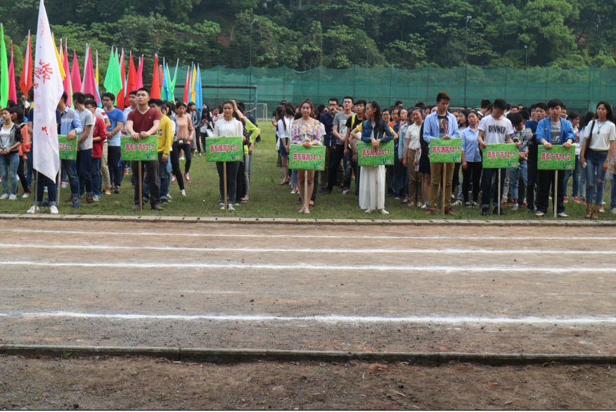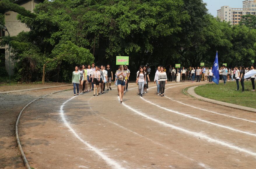 4月14日下午3:50,旅游系、财经系、电信系各班在新村校区操场举行了今年春季运动会的开幕式彩排活动。