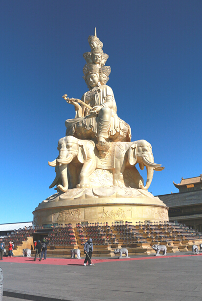 2014年12月28日,旅游系旅游纪念品研发团队陈英教授、张阳军和马世新老师前往峨眉山景区采集设计素材。当日,在陈英教授的带领下,三位老师首先观瞻了历史悠久的万年寺。寺内无粱砖殿中骑六牙白象的普贤菩萨铜像是具有代表性的佛像,相传为宋代所建,造型端庄典雅。