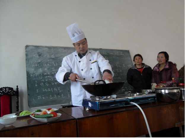 2月17日-3月17日旅游系在峨边彝族自治县大堡镇开展劳务扶贫厨师培训,系领导李忠东、黄剑波、何加健组织烹饪专业教师胡文才、陈瑞祥、刘海精心编排培训方案、制定教学计划和每日教学课程,组织教学设施设备,并选派实践与教学经验丰富的教师胡文才和陈瑞祥承担培训工作,院继教处和旅游系领导多次到大堡镇指导培训工作。经过一个月的教学培训菜品40个,小吃5个,雕刻和水果拼盘5个,讲授了营养卫生的基本知识和餐饮企业管理知识等,86名学员全部参加中式烹调师初级鉴定考试,全部通过考试获得职业资格证书,达到培训目标。培训结业典礼上峨边彝族自治县移民和扶贫办和峨边彝族自治县大堡镇政府高度评价:此次beat365英国官方网站的培训超过以往扶贫和就业培训,教师敬业,专业技术强,学员学了真本领,为峨边做了一件大好事,希望以后培训再请beat365英国官方网站!