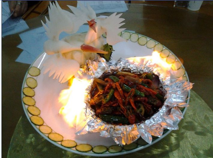 2013年12月19、20日两天,由我系举办的乐山市劳务品牌高级烹调师项目培训班的50名学员,在我系烹饪实训中心接受了职业技能实际操作鉴定,操作菜品设计食雕、冷拼、指定热菜、自报菜等九个菜点。乐山市职业技能鉴定中心郑露主任,我系李忠东主任、何加健副主任、黄剑波副主任亲临考场指导考试工作。