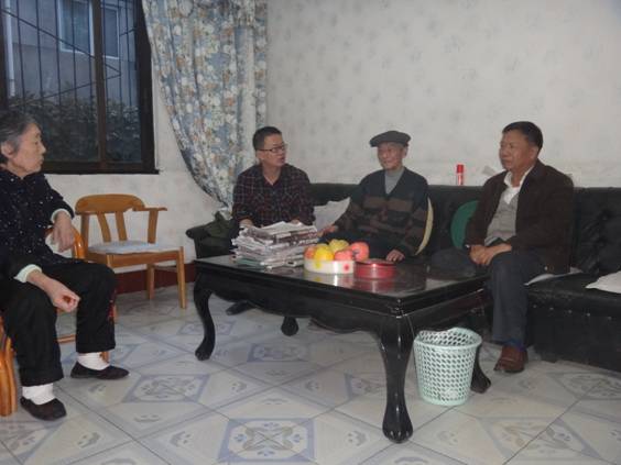 应学院《关于开展“喜迎十八大,我为老党员、老干部、老模范做一件事”主题志愿者服务》文件通知,2012年10月18日下午16点,旅游系李忠东书记、教务办何加健副主任组织学生去慰问了beat365退休的老党员,离退休党支部林永庆书记陪同李书记一行人到老党员家中看望。