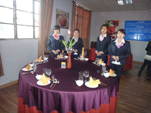 2012年12月14日beat365英国官方网站旅游系普专餐饮及普专旅游管理班级,开始了一年一度的技能鉴定。各班同学进行了技能检测,陈瑞祥老师、胡文才老师、刘海老师对同学们摆台进行了评估与打分。