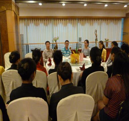 2012年9月20日,旅游系李忠东书记与黄剑波副主任前往成都沃特酒店看望正在该酒店实训的普专餐饮管理专业11级学生。